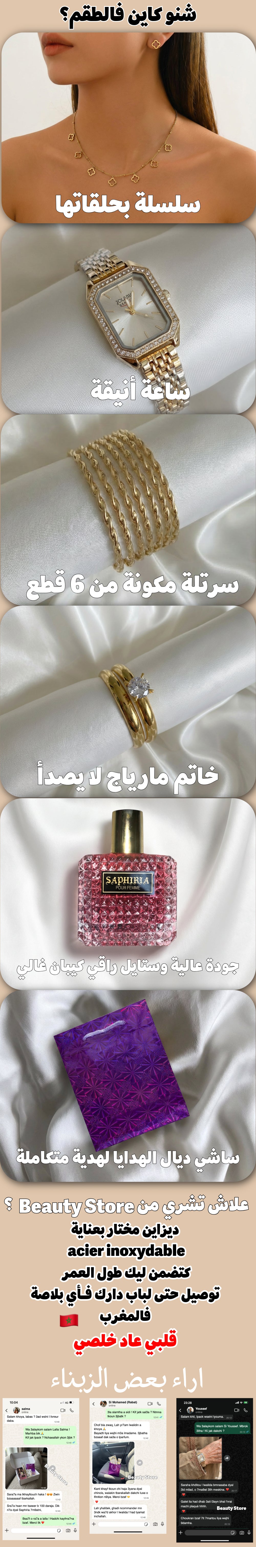 الباك فيه 7 دالبياسات : ماغانا كلاس، ريحة نسائية، سنسلة وحوالق موديل "تريفل" ( Inox )، براسليات ( Inox )، جوج خواتم ( Inox )، وزايدين ليك ساك كادو فابور.