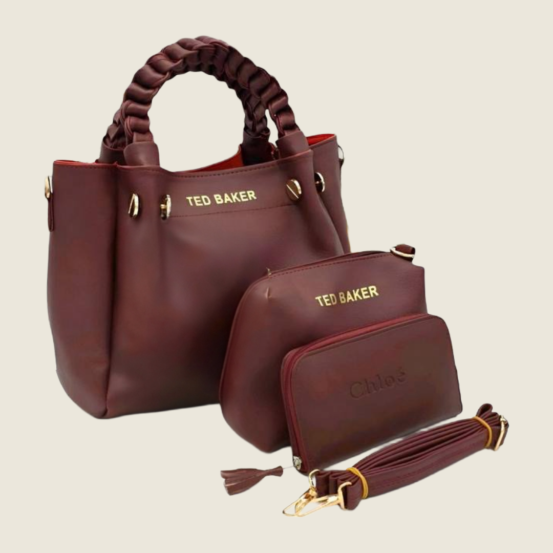 • Un sac à main avec poignée tressée et détails dorés